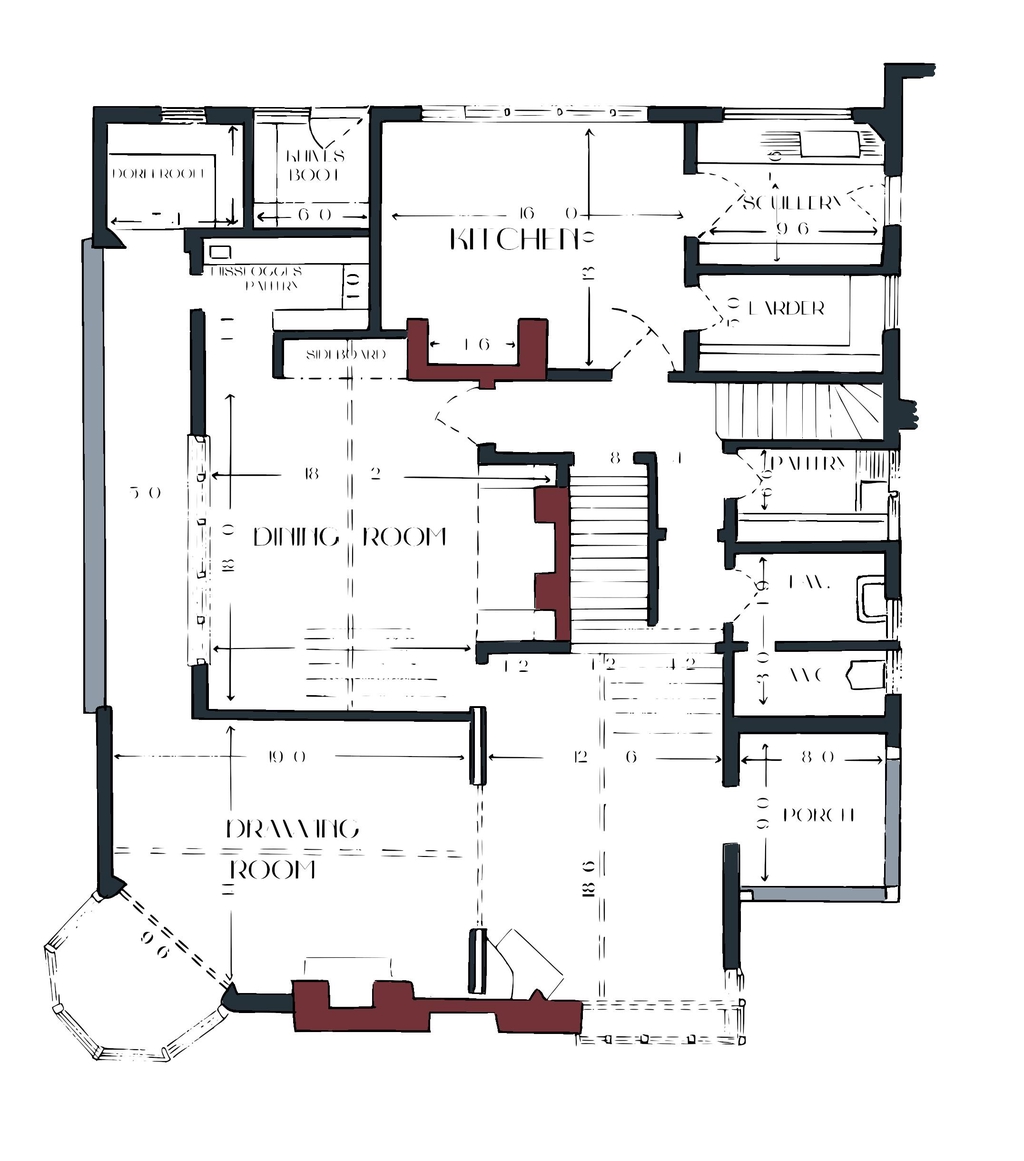 I provided the client with a choice of black and white or colour images. We worked closed on paper, mount and framing choices. I was also able to refresh the original floorplan of the property as a keepsake of the original use of this beautiful Arts and Crafts home when it was built in the early 1900s.