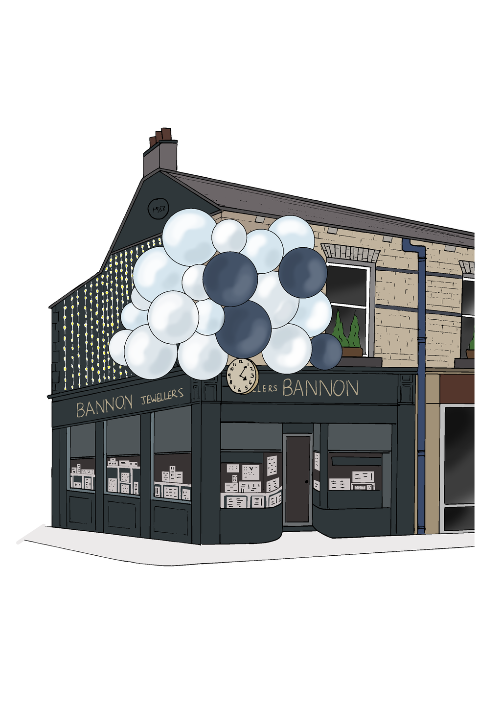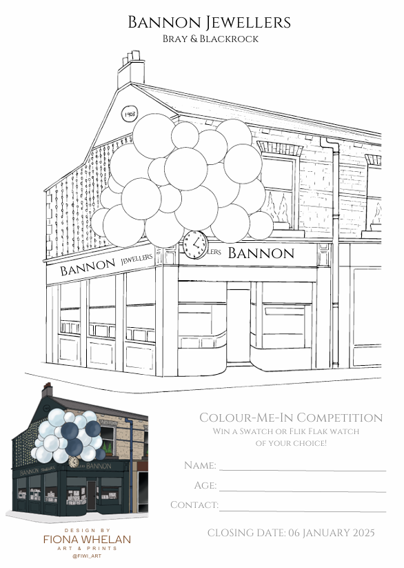 I worked with Bannons Jewellers to create a promotional competition for children, creating a black and white and colour version of their iconic Christmas display from their shop in Bray.